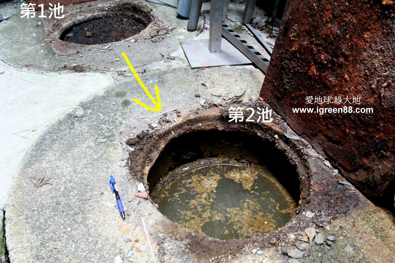 理論上,從馬桶流下來的糞水,經過化糞池三池沉澱後,絕大部份的糞便應該都會被攔阻在化糞池中,最後排進水溝的水不會有明顯的糞便殘渣。進一步追查後發現這組化糞池有兩個問題,造成無法確實攔阻水肥: